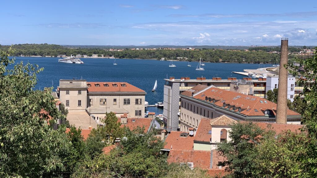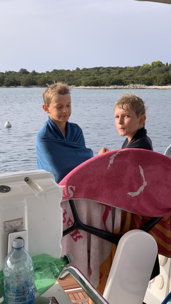Je mehr wir uns Grado näherten desto mehr Quallen konnten wir entdecken. Nicht viel tiefer als in Caorle fuhren wir durch die Einfahrt und legten in der gerade groß genügenden Box an den Dalben an.