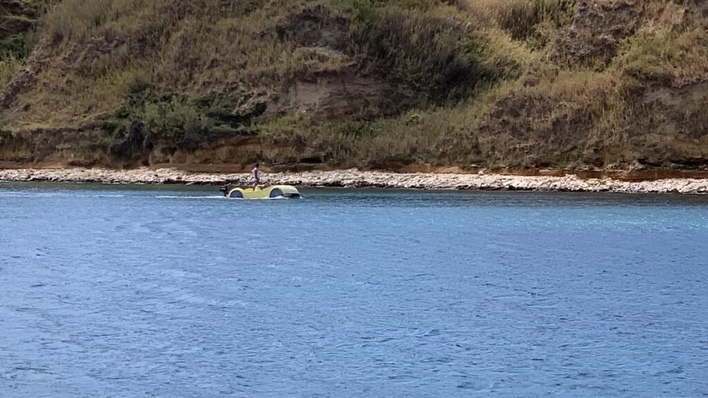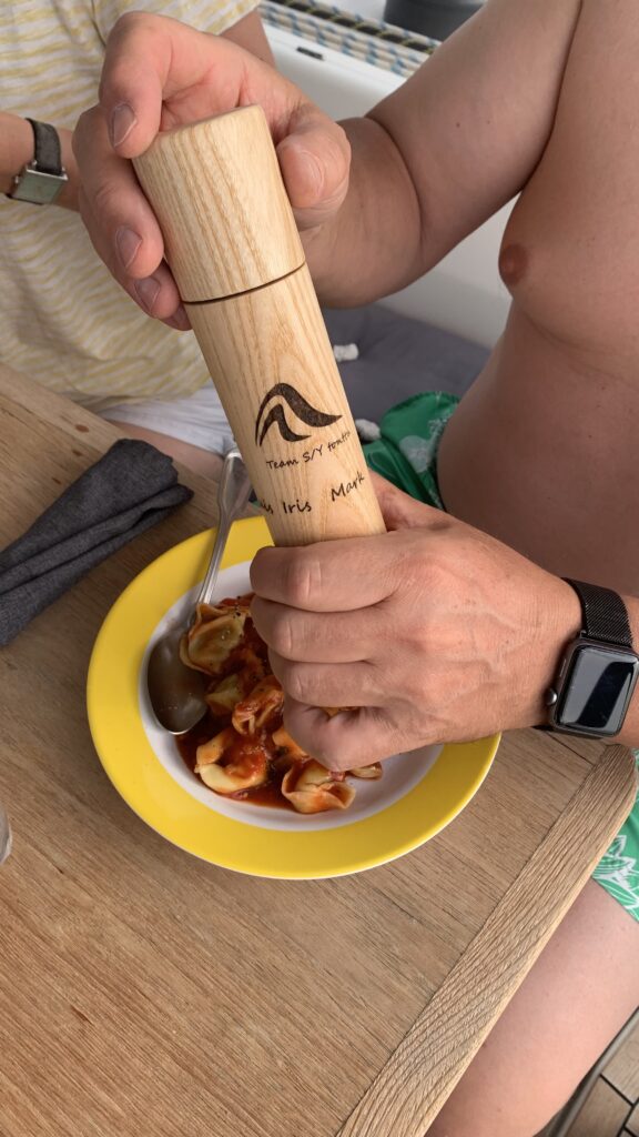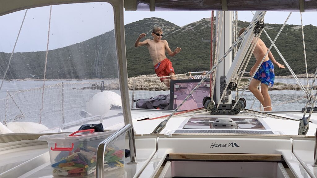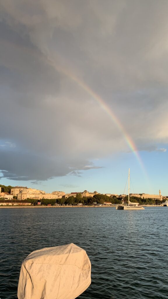 Wir haben beschlossen mit dem Dingi in den Ort zu fahren, blöderweise setzte genau dann ein Gewitter an, war aber nicht schlimm. Wir haben nur Regen abbekommen.