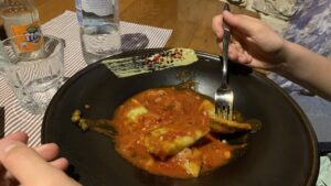 Als Abschluss des ersten Urlaubstags waren wir lecker Essen im Restaurant Kampanel in Biograd. Es gab Fisch, Thunfisch und Gemüse Ravioli.