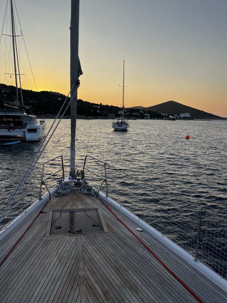 Die Nacht war – wie üblich – etwas unruhig in Sv. Nedjelja. Denn die Aussenmole ist unter Wasser nicht ganz bis zum Grund geschlossen, so dass immer etwas von der Welle drunter durch zu spüren ist. Aber unsere Fender haben trotz heftigem Protestgequietsche trotzdem alle durchgehalten.